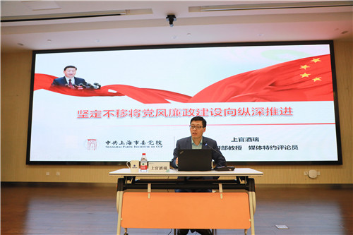 会议邀请上海市委党校上官酒瑞教授作了《坚定不移将党风廉政建设向纵深推进》的专题学习报告。他以“全面从严治党”为主线,系统阐述了新时代全面从严治党取得的新成就、面临的新问题以及新征程上加强党风廉政建设的新要求,带领大家进一步学习了习近平总书记在党的二十大报告中关于全面从严治党、加强党风廉政建设的新理念、新思想、新战略,解读了习近平总书记关于大党独有难题的“六个如何始终”的重大意义和深刻内涵,阐述了加强党的政治建设的深刻要义,强调党员干部要始终增强政治意识、大局意识、核心意识、看齐意识,在政治立场、政治方向、政治原则、政治道路上始终同党中央保持高度一致,增强党内政治生活的政治性、时代性、原则性、战斗性,弘扬忠诚老实、公道正派、实事求是、清正廉洁等价值观,保持风清气正的政治生态。上官酒瑞教授的报告重点突出、脉络清晰,以鲜活事例阐释理论热点,对与会人员具有很强的指导性和启发性。