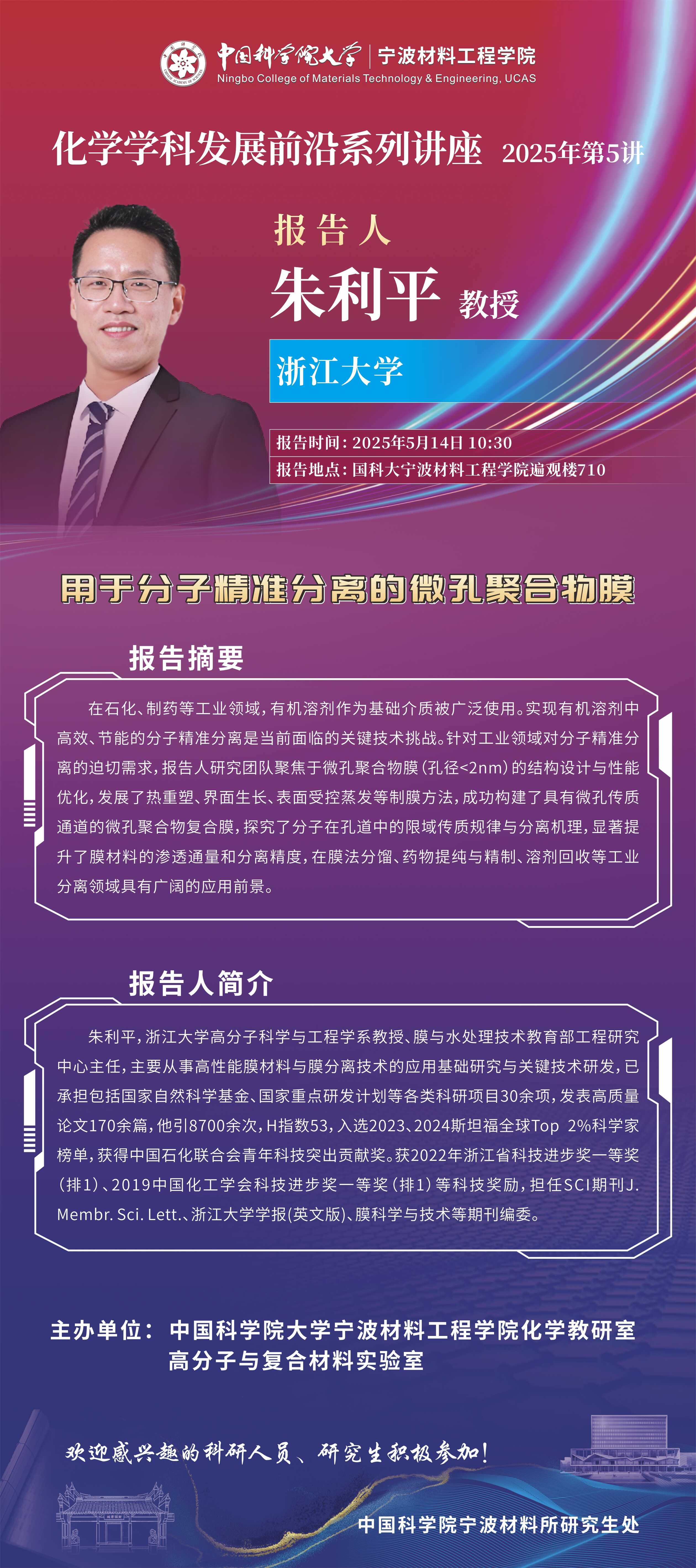 5月14日:朱利平:用于分子精准分离的微孔聚合物膜