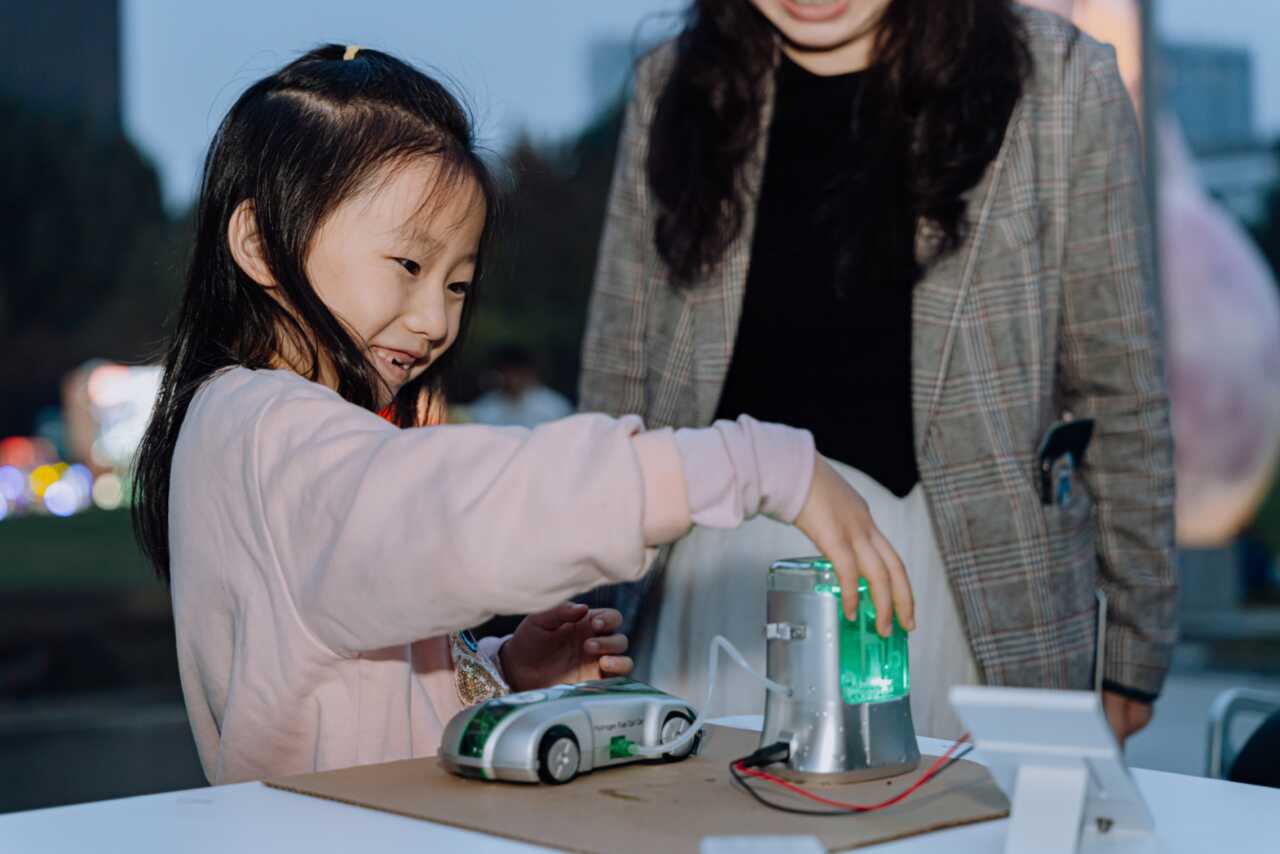 材料创意工坊里,“氢骑萌宠”“极光童话幻彩镜”等小实验让大家亲手触摸新材料新技术;迷你智能遥控车体验区,手势操控的奇妙让孩子们笑声不断;“科学与美”电镜图片展更以“微纳之间 浩瀚之美”为主题,通过电子显微镜下的独特视角,带观众领略肉眼难及的材料之美。