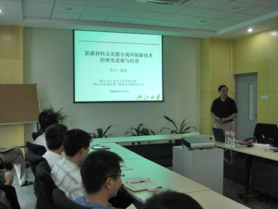 接受聘书后,徐又一为高分子事业部科研人员、研究生作了题为《膜分离环保新材料与新技术的研发进展及其应用》的交流报告。他将数十年积累的科研实践化为平实易懂的语言文字,介绍了国内外膜材料与技术的市场分析和发展趋势,适用于环保产业(废水、废气净化处理)要求的新膜材料的制备方法及其结构控制,以及膜分离环保新技术的研发进展及其应用,国内外膜材料市场及研究的现状、存在的问题等。在交流互动环节,他热情而耐心地回答各种专业问题,与在场的科研人员一同探讨学术问题。生动精彩的报告为膜材料研究工作的开展拓宽了思路。