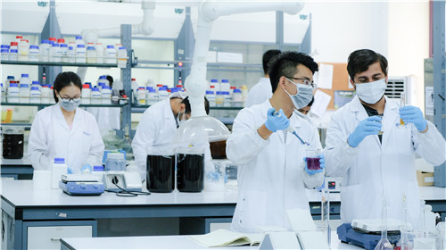 图片拍摄于动力锂电池工程实验室,中国留学生和外国留学生合作实验,探讨石墨烯在锂电池方面创新的一瞬间。