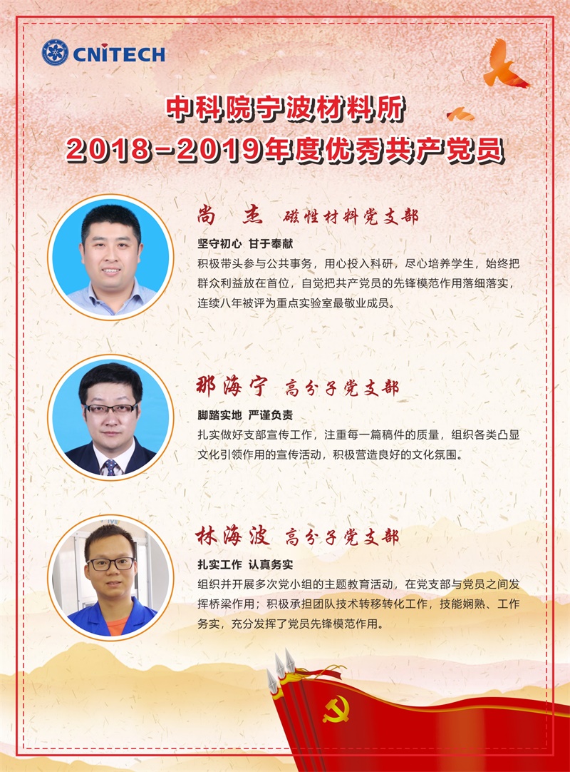 2018-2019年度优秀共产党员:尚杰、那海宁、林海波