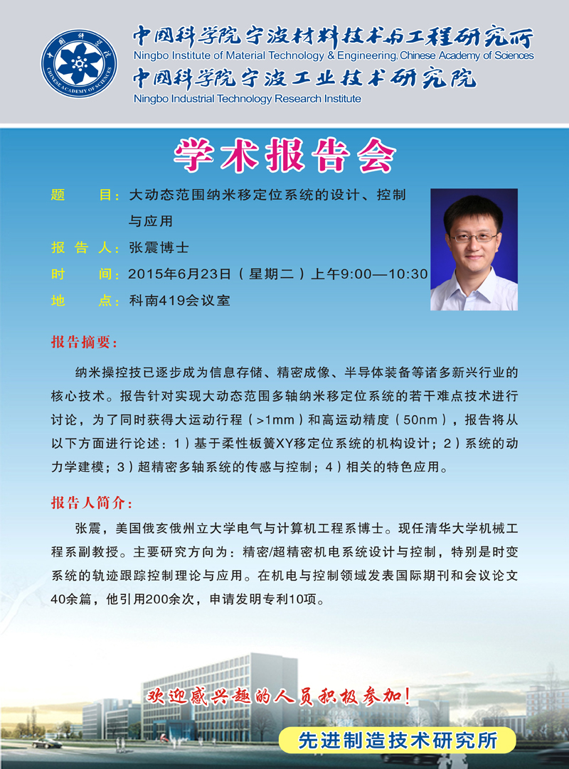 张震:大动态范围纳米移定位系统的设计、控制与应用