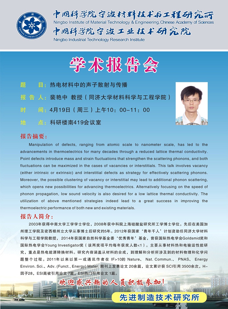 4月19日:裴艳中:热电材料中的声子散射与传播