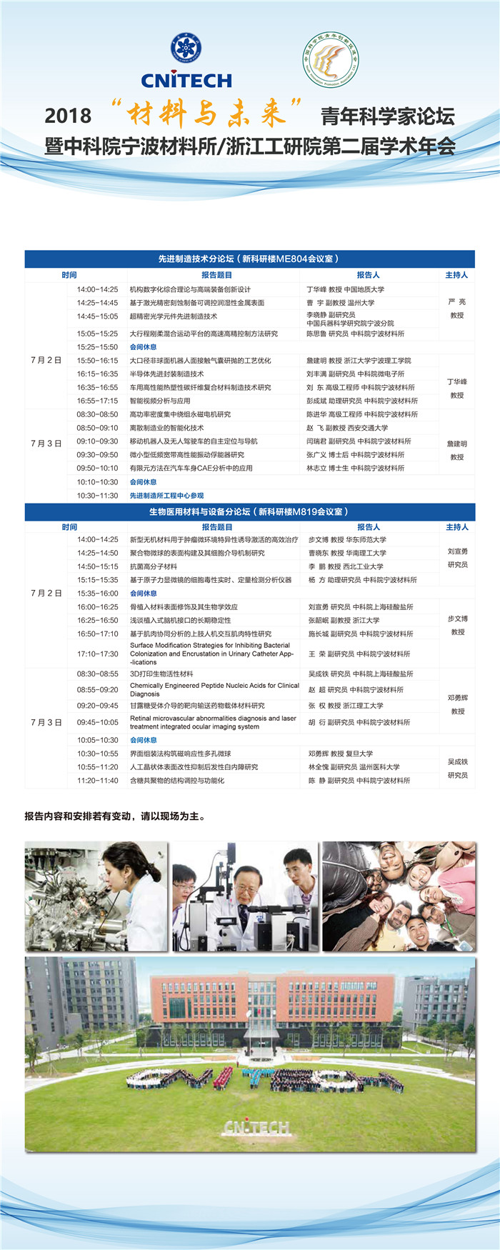 7月2-3日:2018“材料与未来”青年科学家论坛暨中科院宁波材料所/浙江工研院第二届学术年会