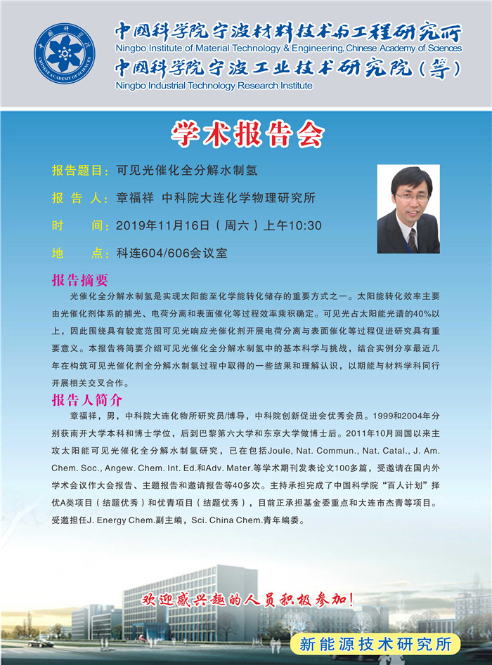 11月16日:章福祥:可见光催化全分解水制氢