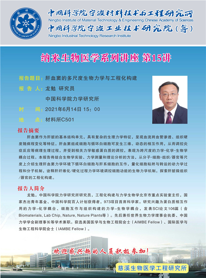6月14日:龙勉:肝血窦的多尺度生物力学与工程化构建