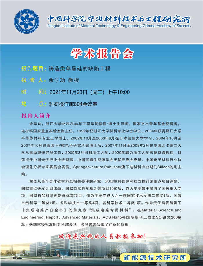 11月23日:余学功:铸造类单晶硅的缺陷工程