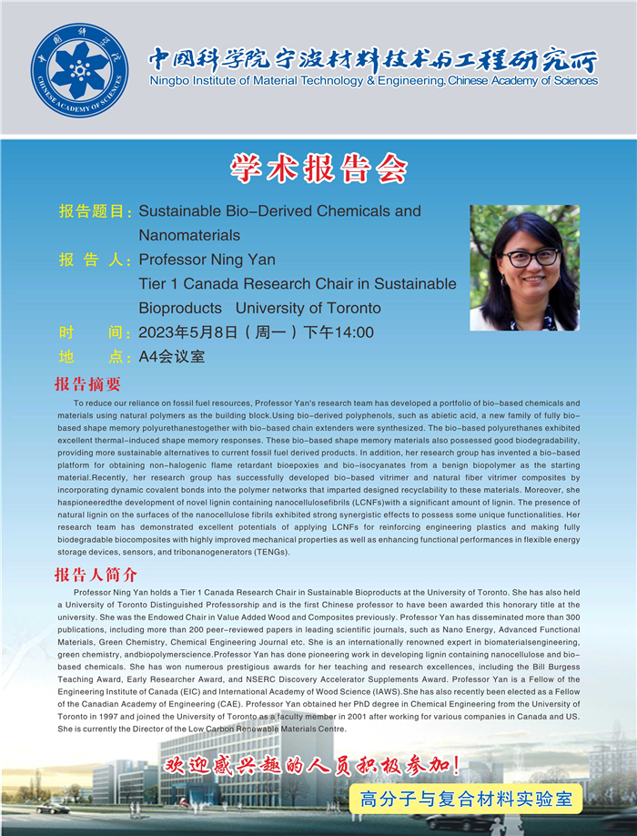 5月8日:颜宁:Sustainable Bio-Derived Chemicals and Nanomaterials