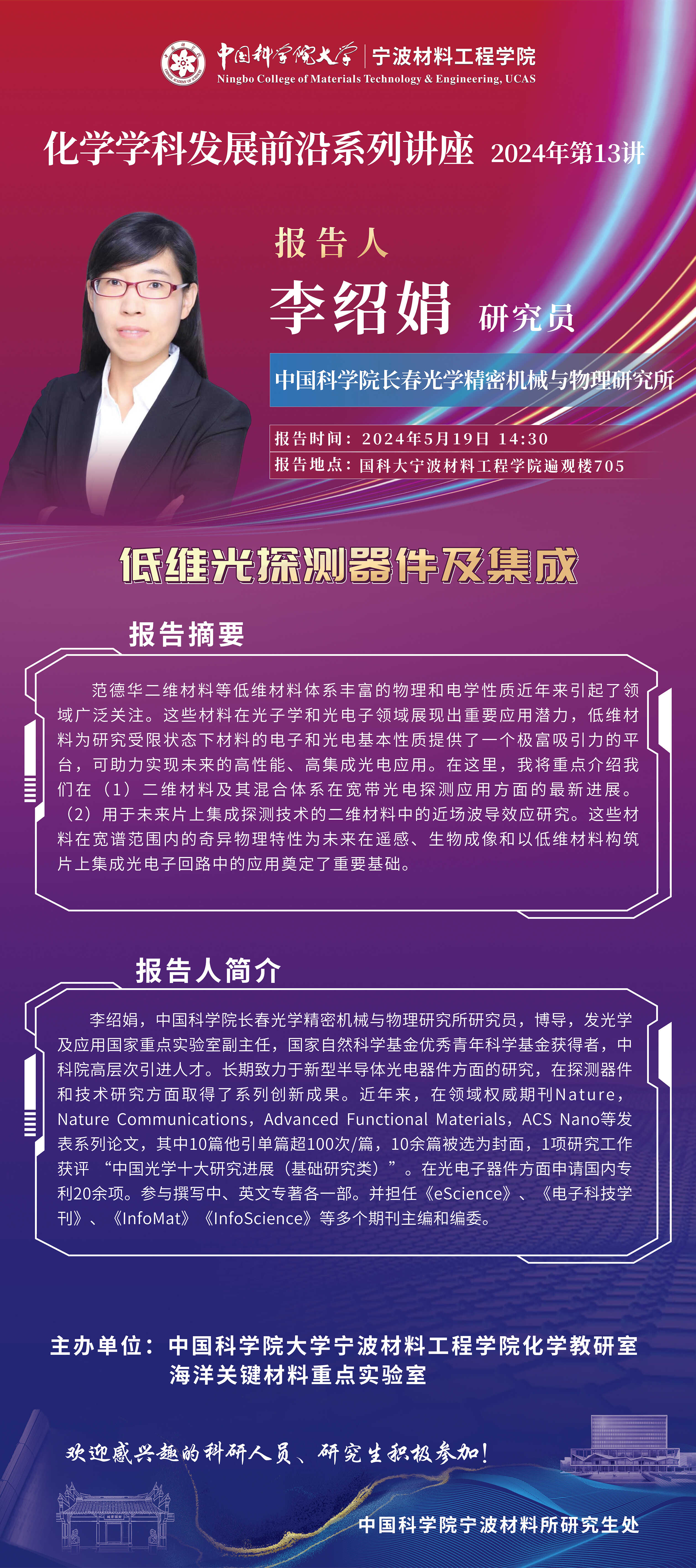 5月19日:李绍娟:低维光探测器件及集成