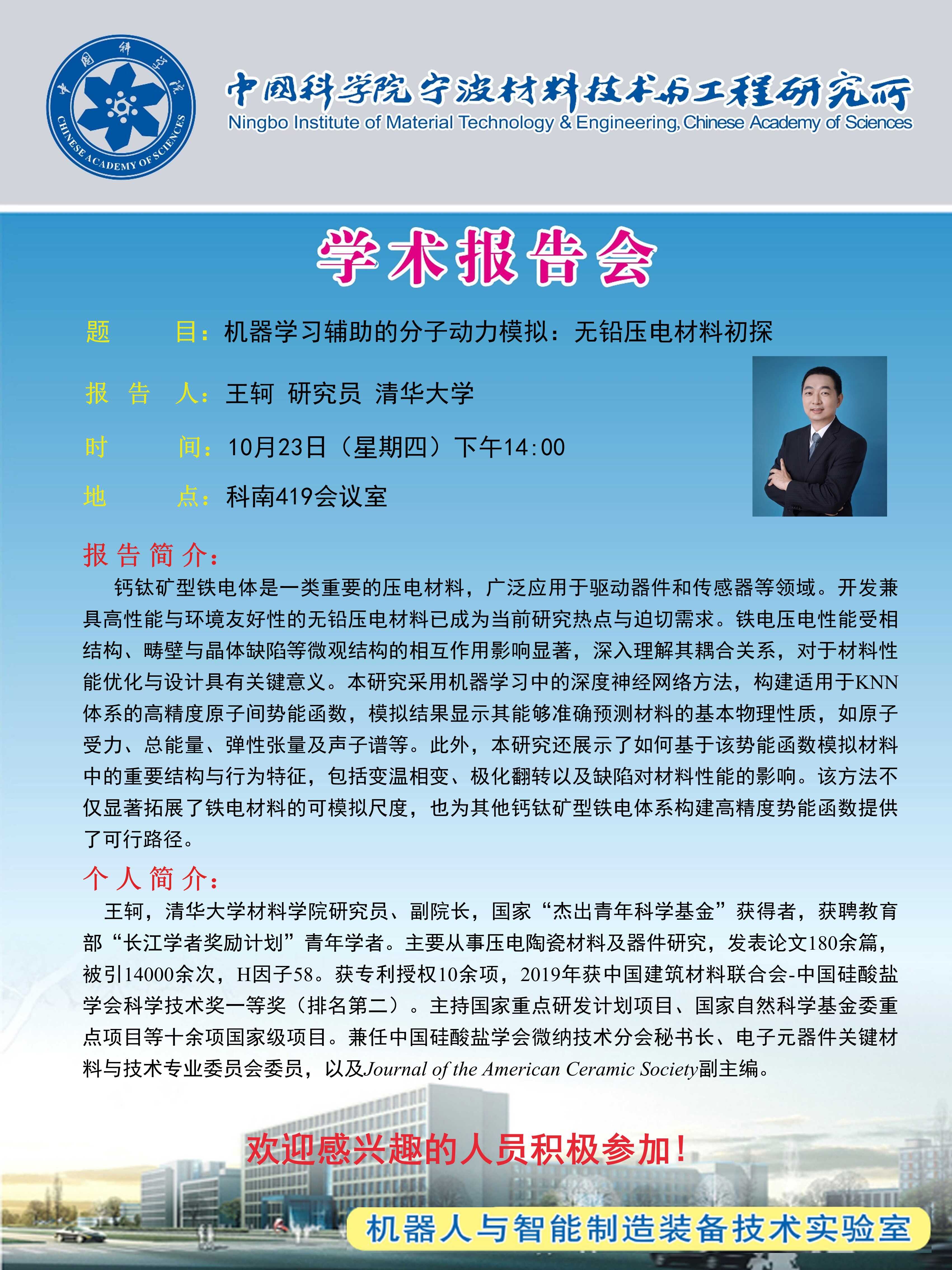 10月23日:王轲:机器学习辅助的分子动力模拟无铅压电材料初探