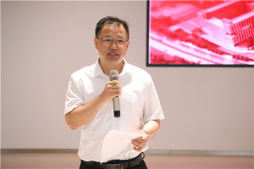 仪式伊始,党委书记李润伟代表宁波材料所对新入住的同学们表示欢迎,他提到,国科大宁波材料工程学院是兼具高颜值、高品质的新学院,拥有“聚方鼎沸”“阅微知洲”“望岸山水”“宝匣阑珊”四大空间,为同学们营造了一个整洁舒适优雅的科研学习和生活环境。学院的一草一木都离不开工作人员的辛勤付出,他代表宁波材料所对国科大宁波材料工程学院所有工作人员的付出表示感谢,并希望同学们在今后的生活中树立主人翁意识,以积极的心态,齐心协力建设好国科大宁波材料工程学院这个新的家园,也希望同学们在新的环境里,珍惜良好平台,与宁波材料所相伴同行,与国科大宁波材料工程学院共同成长,与国家发展同呼吸共命运,为实现高水平科技自立自强贡献自己的力量。