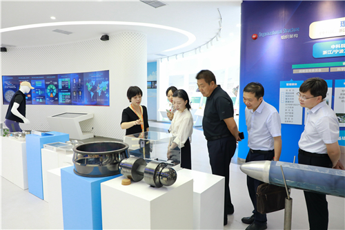 在宁波材料所展厅,潘风华一行听取了党政办公室主任金乐关于宁波材料所使命愿景、组织架构、历史沿革、人才队伍建设、创新平台建设、科研进展、成果转化等方面的情况介绍。