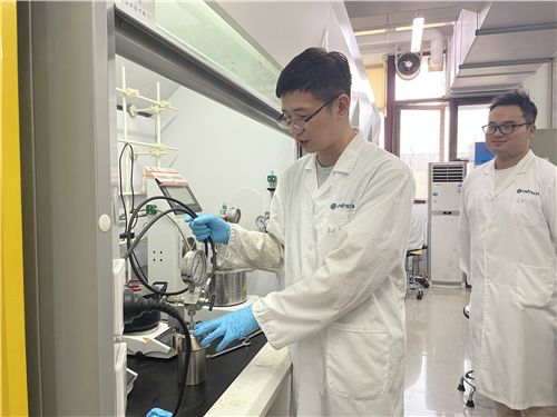在展厅参观环节,宁波二中化学组的老师们了解了宁波材料所建所目标、建所历程以及宁波材料所在新材料、新能源、先进制造和生物医学工程等领域的探索和成果。随后,大家来到有机储氢与催化实验室,谢银君研究员对实验室进行了简要介绍,并对2-甲基喹啉的氢化实验作了简要说明。他提到,液态有机储氢是唯一一种常温常压储存技术,具有储氢容量高、安全稳定等优点,因此,近年来高效液态有机储氢技术的发展备受关注。在实验互动环节,大家观看了2-甲基喹啉的氢化实验,2-甲基喹啉是最常见的有机化合物,使用该类化合物作为储氢材料具有反应条件相对温和、能耗及整体安全风险低等优势。本次实验由副研究员胡越进行操作示范。实验操作后,双方就实验操作规范、实验室管理等感兴趣的问题开展互动交流。