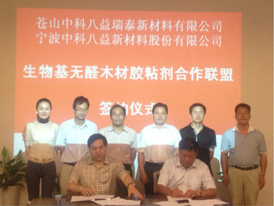 6月18日,山东省苍山县瑞泰石膏集团有限公司与宁波中科八益新材料股份有限公司就宁波材料所生物基无醛木材胶黏剂技术达成正式合作联盟协议,标志着生物基无醛木材胶黏剂的市场推广工作取得新的进展。