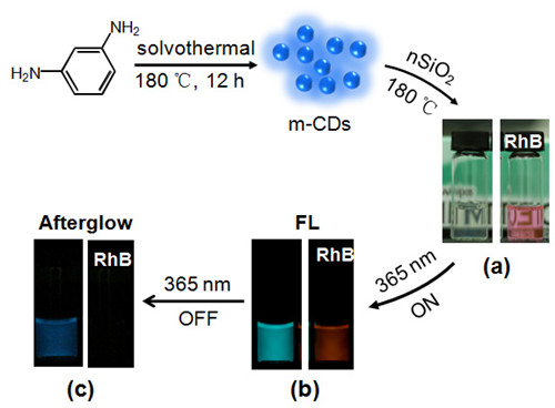 碳基纳米发光材料(碳点)是近年来发展起来的一类新型发光材料,由于制备纯化过程简单、光物理化学性能稳定、发射特性可调、易于功能化修饰、水溶性及生物相容性良好等优势,自2004年被发现以来受到了科研人员广泛的关注,并且在化学/生物传感、生物成像、医学诊疗、光催化及光电器件等众多领域表现出巨大的应用前景。然而,科研人员近年来主要关注该类材料的荧光性能调控与制备、发光机理及潜在应用的探索,对其长寿命发光性能的研究还比较有限。